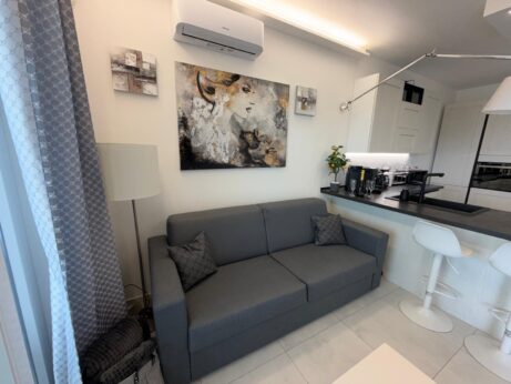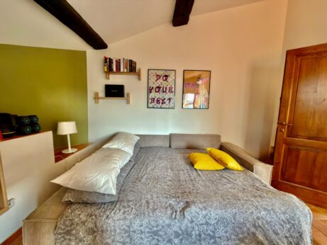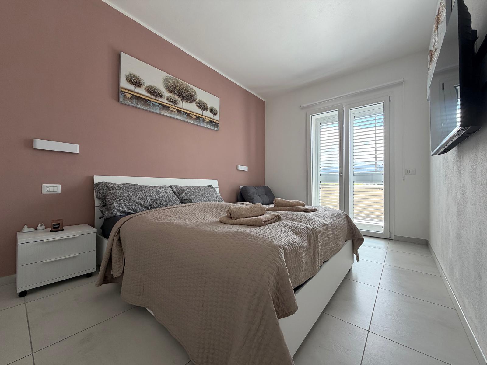 Apartmán nabízí dvě ložnice – hlavní ložnici s manželskou postelí a druhý pokoj, který může sloužit jako pracovna nebo pokoj pro hosty s rozkládacím gaučem.