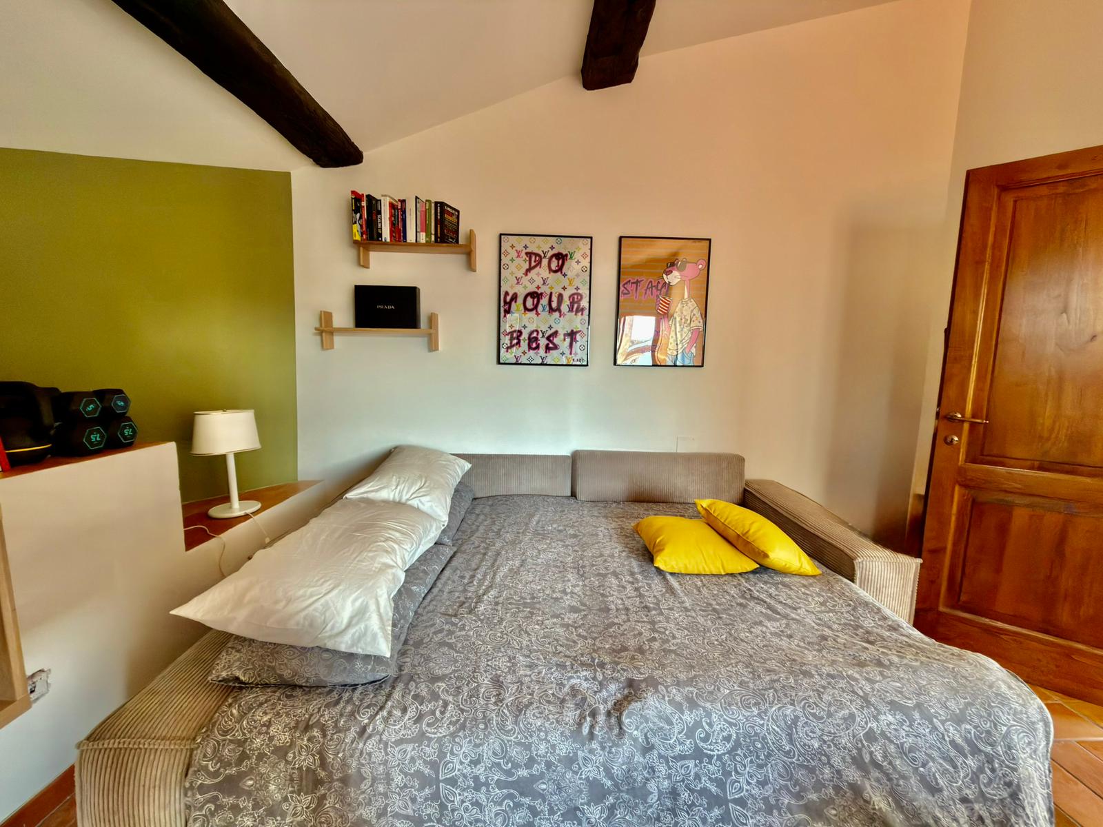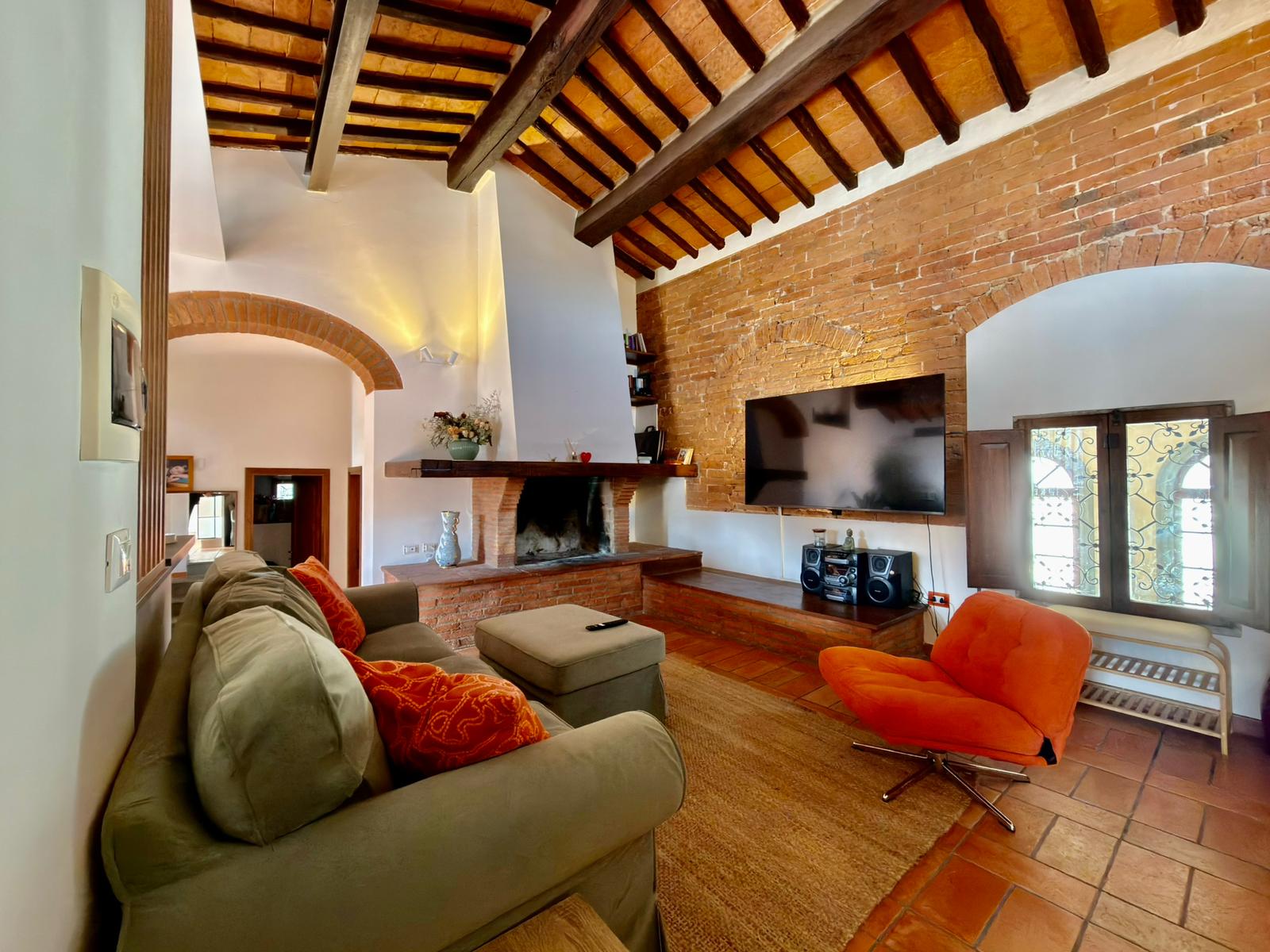 Byt je prostorný, světlý a zařízený v typickém toskánském stylu – zachovalé dřevěné trámy, cihlové zdi a terakotové podlahy, které vytvářejí autentickou atmosféru.